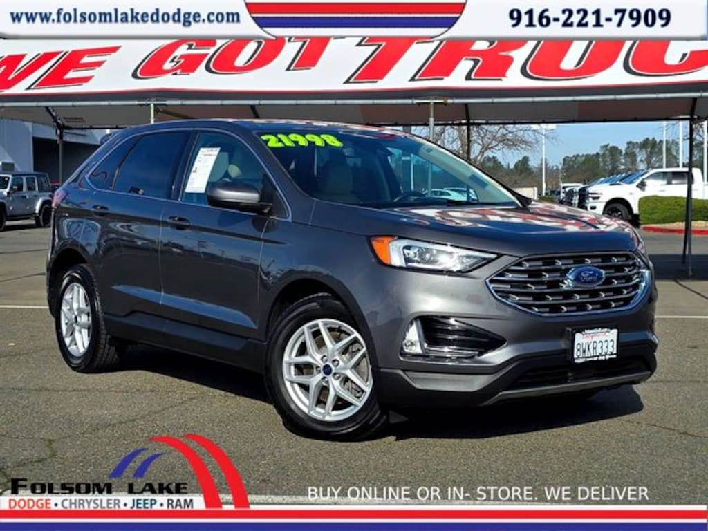 New Price! 21/28 City/Highway MPG **CARFAX 1 OWNER**, MANAGER'S SPECIAL, Edge SEL, 4D Sport Utility, EcoBoost 2.0L I4 GTDi DOHC Turbocharged VCT, 8-Speed Automatic, AWD, Gray Metallic, Dune Premium Synthetic, Adaptive Cruise Control w/Stop & Go, Cargo Accessory Package, Cargo Mat, Connected Built-In Navigation, Evasive Steering Assist, Ford Co-Pilot360 Assist+, Lane Centering, Rear Bumper Protector, Retractable Cargo Area Cover, 3.80 Axle Ratio, 4-Wheel Disc Brakes, 6 Speakers, ABS brakes, ActiveX Seating Material Heated Bucket Seats, Air Conditioning, Alloy wheels, AM/FM radio: SiriusXM with 360L, Auto High-beam Headlights, Auto-dimming Rear-View mirror, Automatic temperature control, Brake assist, Bumpers: body-color, Compass, Delay-off headlights, Driver door bin, Driver vanity mirror, Dual front impact airbags, Dual front side impact airbags, Electronic Stability Control, Emergency communication system: SYNC 4 911 Assist, FordPass Connect, Four wheel independent suspension, Front & Rear Floor Liners w/Carpet Mats, Front anti-roll bar, Front Bucket Seats, Front Center Armrest w/Storage, Front dual zone A/C, Front fog lights, Front License Plate Bracket, Front reading lights, Fully automatic headlights, Heated door mirrors, Heated front seats, Illuminated entry, Knee airbag, Low tire pressure warning, Occupant sensing airbag, Outside temperature display, Overhead airbag, Overhead console, Panic alarm, Passenger door bin, Passenger vanity mirror, Power door mirrors, Power driver seat, Power Liftgate, Power passenger seat, Power steering, Power windows, Radio: AM/FM Stereo/MP3 Capable, Rear anti-roll bar, Rear reading lights, Rear seat center armrest, Rear window defroster, Rear window wiper, Remote keyless entry, SiriusXM w/360L, Speed control, Speed-Sensitive Wipers, Split folding rear seat, Spoiler, Steering wheel mounted audio controls, SYNC 4A w/Enhanced Voice Recognition, Tachometer, Telescoping steering wheel, Tilt steering wheel, Traction control, Trip computer, Variably intermittent wipers, Edge SEL, 4D Sport Utility, EcoBoost 2.0L I4 GTDi DOHC Turbocharged VCT, 8-Speed Automatic, AWD, Gray Metallic, Dune Premium Synthetic, Adaptive Cruise Control w/Stop & Go, Cargo Accessory Package, Cargo Mat, Connected Built-In Navigation, Evasive Steering Assist, Ford Co-Pilot360 Assist+, Lane Centering, Rear Bumper Protector, Retractable Cargo Area Cover.